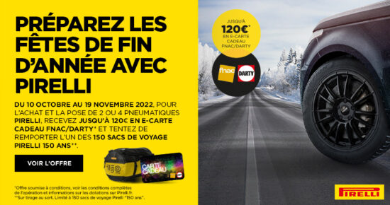 Du 20 Mars au 29 Avril 2023, pour l’achat et la pose de 2 ou 4 pneumatiques Pirelli Eté, Hiver […]