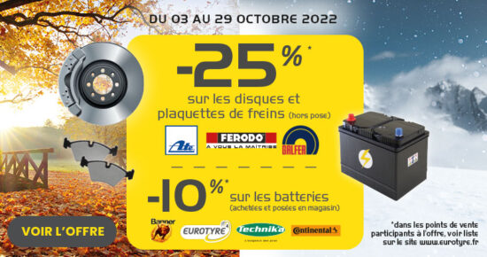 Du 10 Octobre au 19 Novembre 2022 pour l’achat et la pose de 2 ou 4 pneumatiques, recevez Jusqu’à 120€ […]
