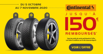 Jusqu’à 150€ remboursés pour l’achat de pneumatiques Continental été, hiver ou toutes saisons Détails des…